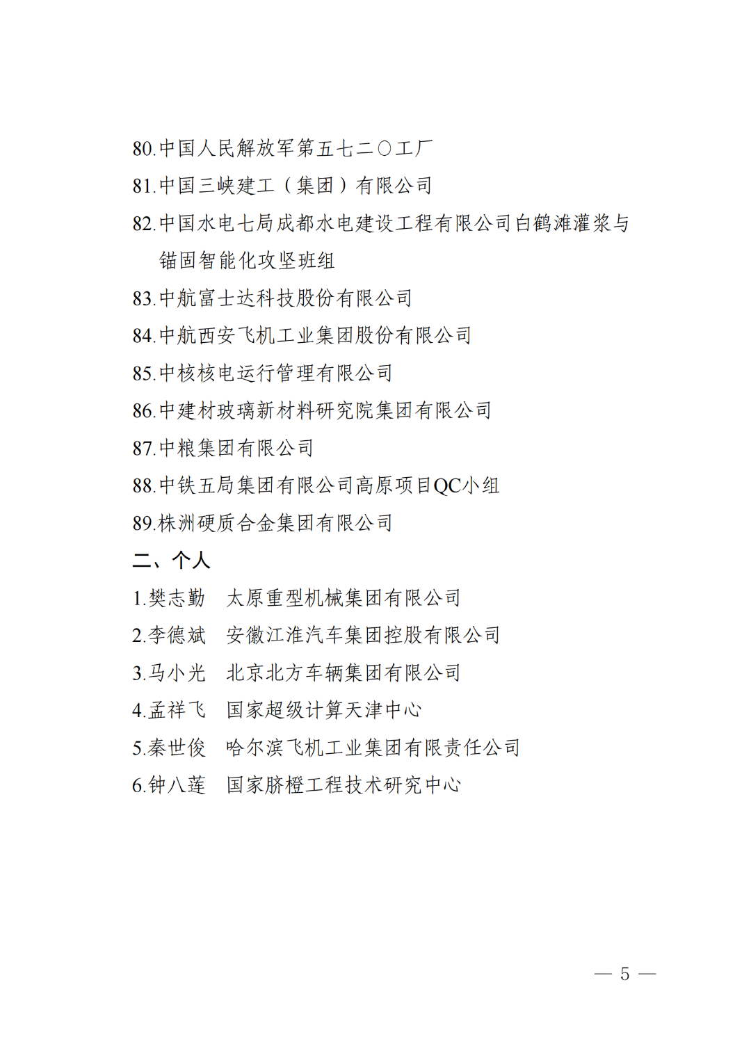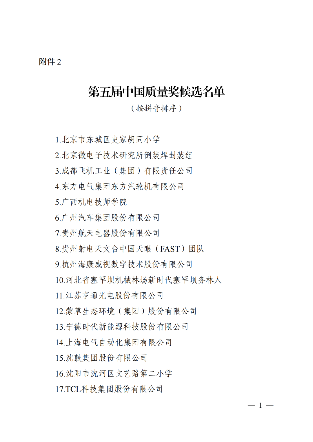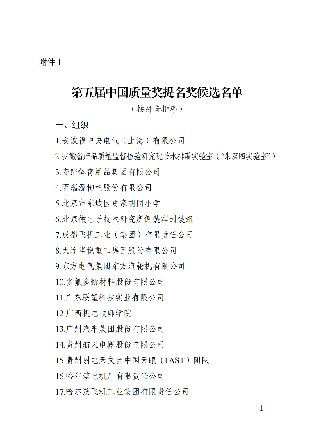 按照《中国质量奖管理办法》规定,经第五届中国质量奖评审分委员会投票表决,89家组织、6名个人进入第五届中国质量奖提名奖候选名单,其中32家组织进入第五届中国质量奖候选名单,现将名单予以公示。