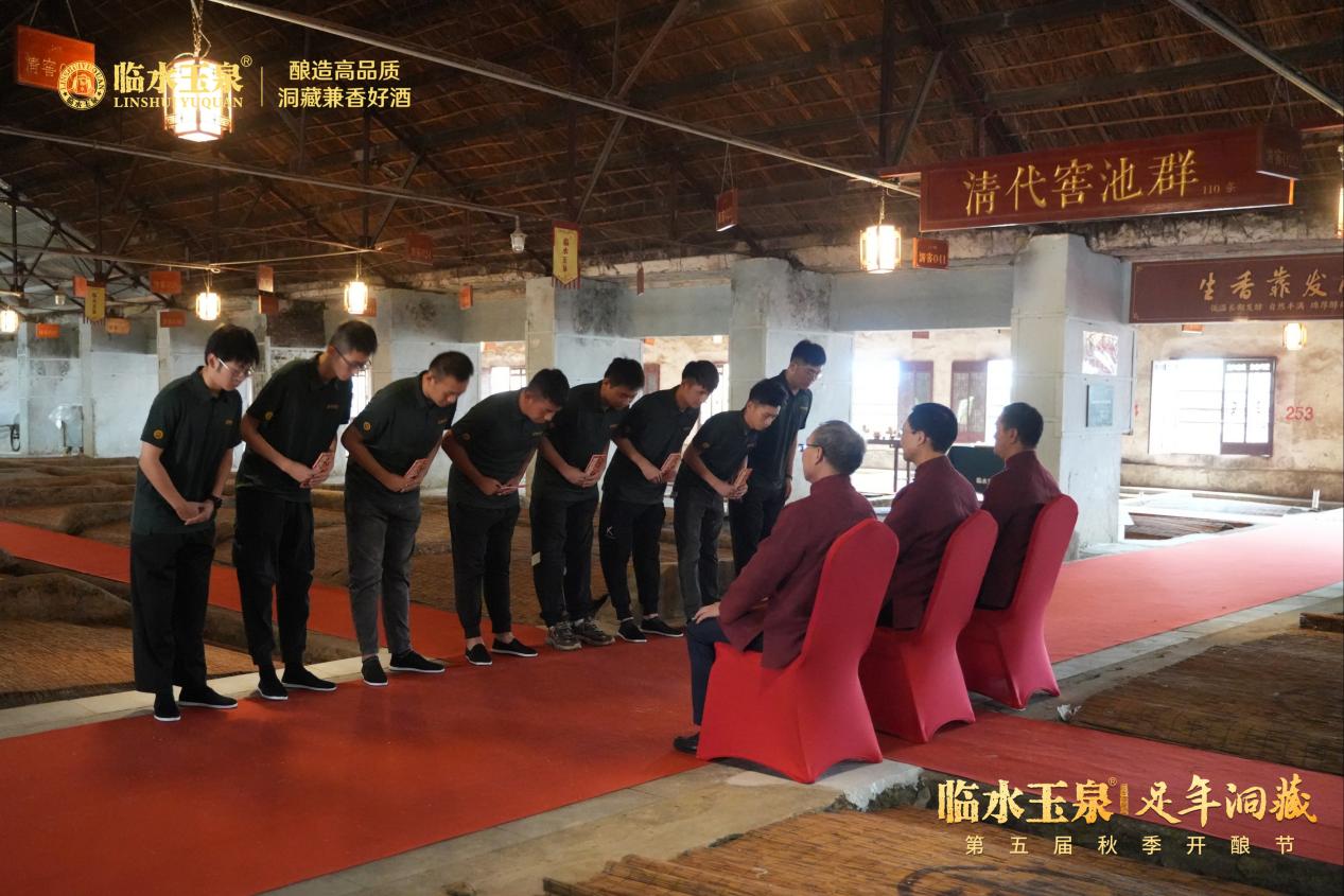 祭祀仪式、拜师礼都是中国的民族传统。如今,又到一年秋酿时,礼先人、续匠心。在临水酒业117口明清古窖池群的现场,鼓声激昂,隆重肃穆!礼仪奉美酒佳肴,祭祀人员进香行礼。随后,临水酒业的弟子们携竹篮装肉干、芹菜、龙眼干、莲子、红枣、红豆等六种礼物行拜师之礼,为师父递名帖敬茶。